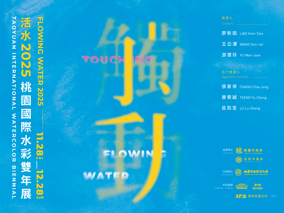 As human beings, we explore the world through our bodies, and what we receive externally becomes the very ground for our inner thoughts and actions. Whether directly or indirectly, the eyes, ears, nose, tongue, and skin perceive and interpret fleeting moments from our surroundings, which are in fact various forms of touch in themselves. Take watercolor, “the practice of aesthetics for citizens,” for instance. With a hand controlling the brush and the tip of the brush moistened with water and pigment, a gentle touch is placed upon the surface of the paper under guided intention, conjuring magical transformations. Interwoven images shape narratives of art, and the viewers appreciating the artworks create a ripple effect, forming imaginations and dialogues into the spectacle of art that is displayed. As an artistic medium, there is definite potential in watercolor. Beyond its ability to delicately portray the tangible, it can also recreate abstraction and give form to mental imagery. Touching: Flowing Water—2025 Taoyuan International Watercolor Biennial invites viewers to experience beauty in its purest essence by immersing in the touch of watercolor, hoping to bring viewers back to the primal womb of art and its motif, whilst establishing profound pathways and possibilities for the art of watercolor.