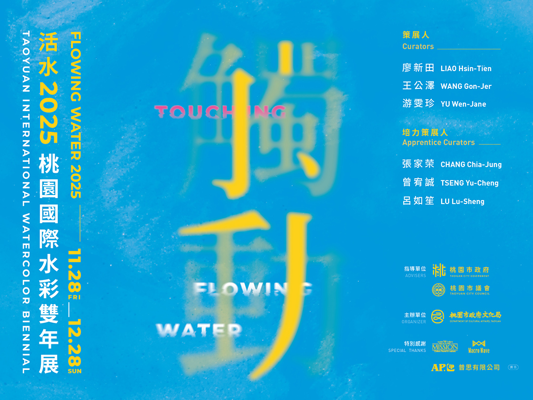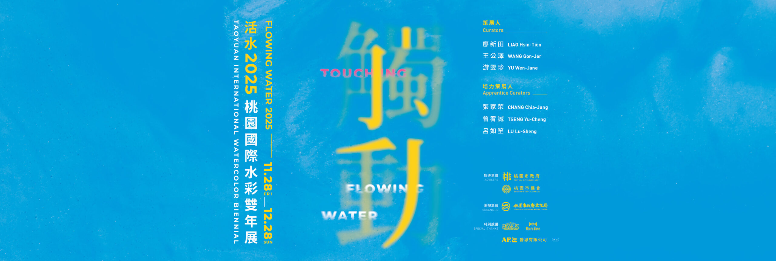 As human beings, we explore the world through our bodies, and what we receive externally becomes the very ground for our inner thoughts and actions. Whether directly or indirectly, the eyes, ears, nose, tongue, and skin perceive and interpret fleeting moments from our surroundings, which are in fact various forms of touch in themselves. Take watercolor, “the practice of aesthetics for citizens,” for instance. With a hand controlling the brush and the tip of the brush moistened with water and pigment, a gentle touch is placed upon the surface of the paper under guided intention, conjuring magical transformations. Interwoven images shape narratives of art, and the viewers appreciating the artworks create a ripple effect, forming imaginations and dialogues into the spectacle of art that is displayed. As an artistic medium, there is definite potential in watercolor. Beyond its ability to delicately portray the tangible, it can also recreate abstraction and give form to mental imagery. Touching: Flowing Water—2025 Taoyuan International Watercolor Biennial invites viewers to experience beauty in its purest essence by immersing in the touch of watercolor, hoping to bring viewers back to the primal womb of art and its motif, whilst establishing profound pathways and possibilities for the art of watercolor.