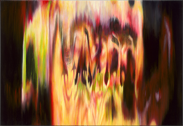 以指印作為創作媒介,透過反覆的觸碰,逐層堆疊畫面,留下身體參與的痕跡。作品呈現形體光影的變異與解構,色彩化為流動的能量,探索觀看與感知中虛實模糊的界線。