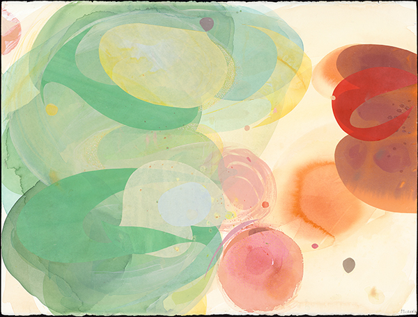 In addition to watercolour painted directly onto paper, I painted and collaged Shoji—a smooth, semi translucent Japanese paper. I juxtaposed firm-cut edges of organic shapes with more amorphous and freely painted ones, some of which dissolve at the edges.